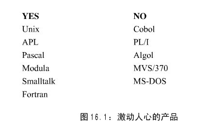 下 Unix、APL、Pascal、Modula、Smalltalk 的界面、甚至 Fortran;与之对应的产品是 Cobol、PL/I、Algol、MVS/370 和 MS/DOS(图 6.1)。