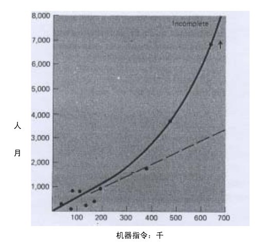 在将上述观点抛开之前,尽管不是为了进行严格的比较,我们仍然可以留意到一些事情。即使在不考虑相互交流沟通,开发人员仅仅回顾自己以前工作的情况下,这些数字仍然显示出工作量是规模的幂函数。